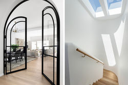 Positioned on a sunny, dual-access corner site, the home is conceived as a sanctuary for family life. Clean lines, expansive glazing, and carefully framed garden vistas shape the spatial experience, while an intelligent plan arranges all living and entertaining spaces at ground level, with four bedrooms above. A natural stone kitchen forms the centrepiece of the home and flows seamlessly to a north-facing garden, heated pool and cabana. The inviting pool area provides an outdoor oasis, enhancing the connection between the home and its surrounding natural landscape, with a design that implements luxurious finishes and sustainable materials.